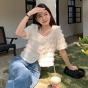 Blouse lengan pendek dengan tekstur unik dan detail feminin yang memberi tampilan manis namun tetap rapi. Cocok untuk daily wear, hangout, hingga semi-formal dengan nuansa Korean style yang effortless.