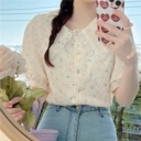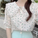 Blouse lengan pendek dengan motif floral lembut yang memberi kesan fresh dan feminin. Ringan dan nyaman dipakai, cocok untuk daily wear, hangout, atau tampilan Korean style yang manis dan effortless.