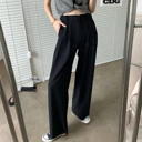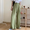 Celana panjang high-waist dengan potongan lurus dan loose yang jatuh cantik — memberi efek kaki terlihat lebih jenjang dan siluet rapi. Desain minimalis dengan detail kancing tersembunyi membuat tampilannya clean dan modern, cocok dipadukan dengan kaos, blouse, atau knit untuk gaya Korean casual sehari-hari.