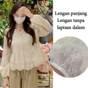 Blouse lengan panjang dengan detail lace feminin dan potongan flowy yang nyaman dipakai. Memberi kesan anggun namun tetap effortless, cocok untuk daily wear hingga acara santai dengan nuansa Korean style.