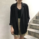 Blazer basic dengan potongan longgar yang memberikan kesan clean, modern, dan effortless. Cocok untuk tampilan kerja, casual formal, hingga layering harian. Mudah dipadukan dengan inner top, celana bahan, rok, atau jeans.