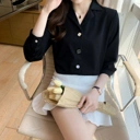 Blouse basic elegan dengan potongan clean yang cocok untuk tampilan kerja maupun daily wear. Desain kerah klasik dan detail kancing memberi kesan rapi, feminin, dan mudah dipadukan dengan celana bahan, rok, atau jeans.