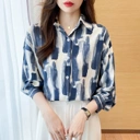 Blouse motif abstrak dengan potongan simple dan bahan jatuh yang nyaman. Memberi kesan modern dan elegan tanpa terlihat berlebihan, cocok untuk kerja, meeting santai, maupun daily wear dengan sentuhan Korean chic style.