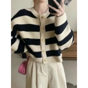 Cardigan rajut wanita motif garis dengan kombinasi warna lembut yang memberikan tampilan manis dan stylish. Model loose dengan detail kancing depan membuatnya nyaman dipakai serta mudah dipadukan dengan rok maupun celana high waist untuk gaya Korean casual yang feminin.